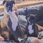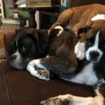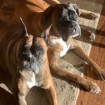 These 2 knuckleheads are (l)Fiona & (r) Finn. I fell in love with Finn in 2014 from the picture that Christy had on her website. A few weeks later he was ours!! A year later Finn’s half-sister, Fiona (same dad) was available. They are the best parts of my day!! I just wish I could share more pics with you!! Thanks, Boxer Puppies for Adoption for giving us all great family dogs!!