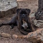 This is our boxer, Boaz, from Cimarron Boxers. He is a healthy, happy, and engaging 80 lb 21 month old male. We live in AZ and flew out to pick him up just as Covid struck in March 2020!